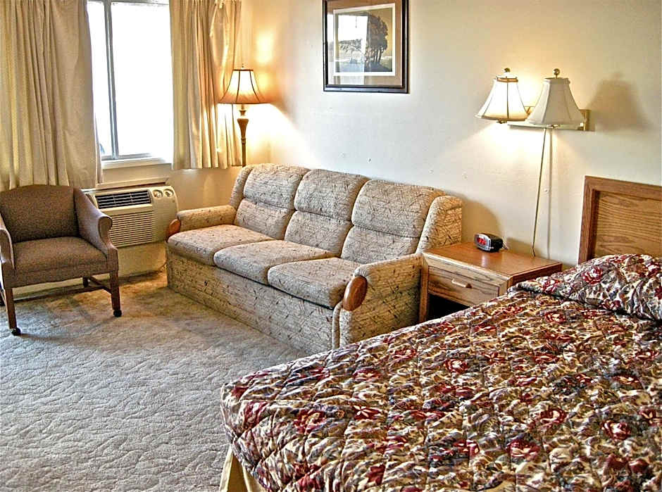This air-conditioned room includes a cable TV, a work desk, a seating area, a microwave and a refrigerator.